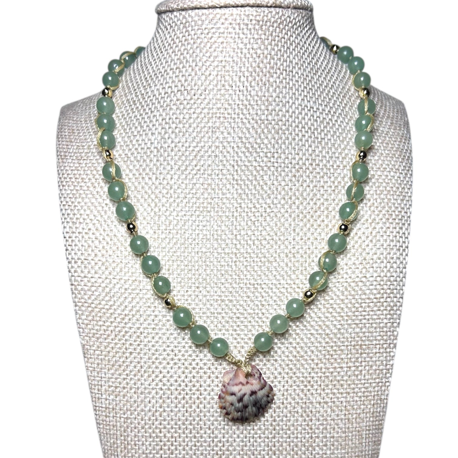 Expertly crafted with Green Aventurine stone beads and an intricate purple scallop shell, this necklace is both stylish and durable. The adjustable size and sliding square knot make it the perfect fit for any outfit. With waterproof and gold accents, it's a versatile piece for any occasion.