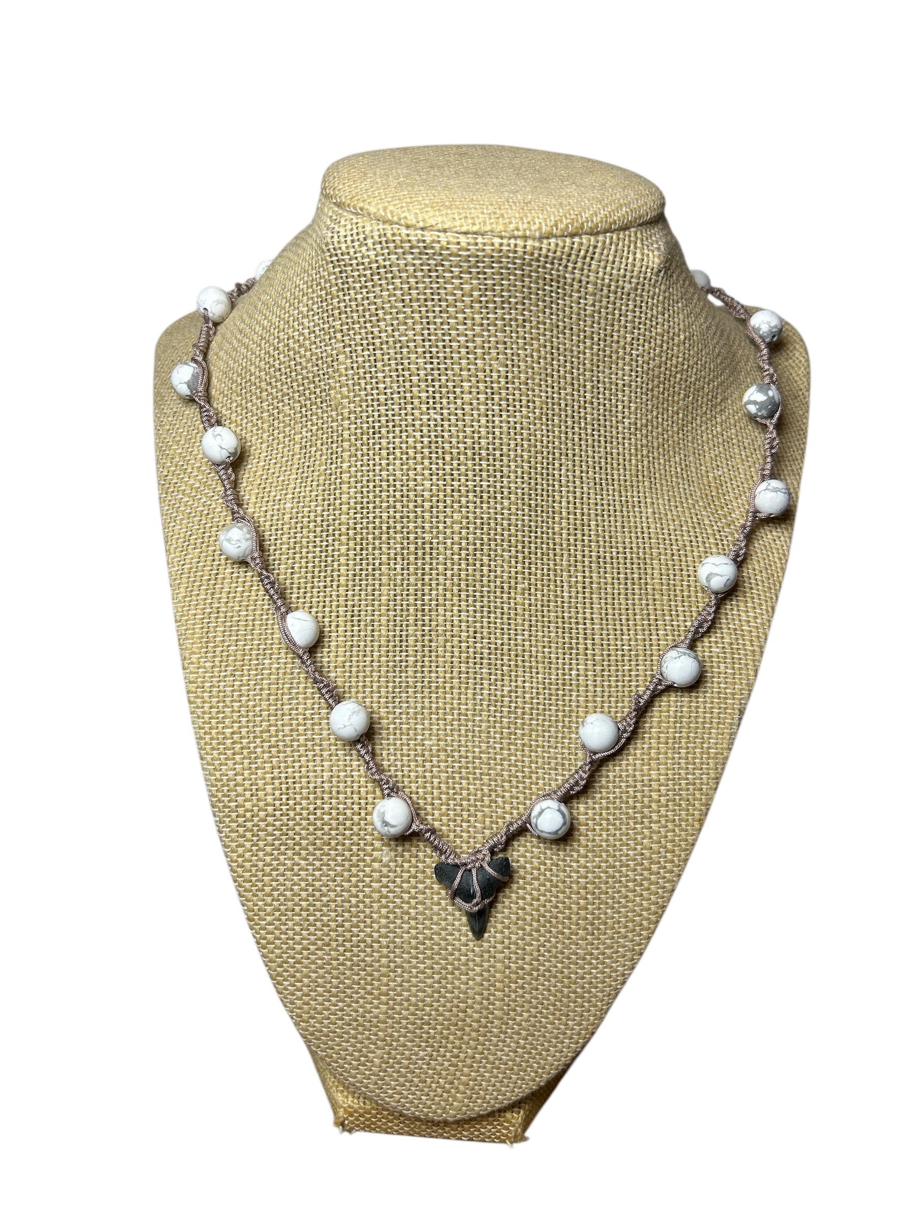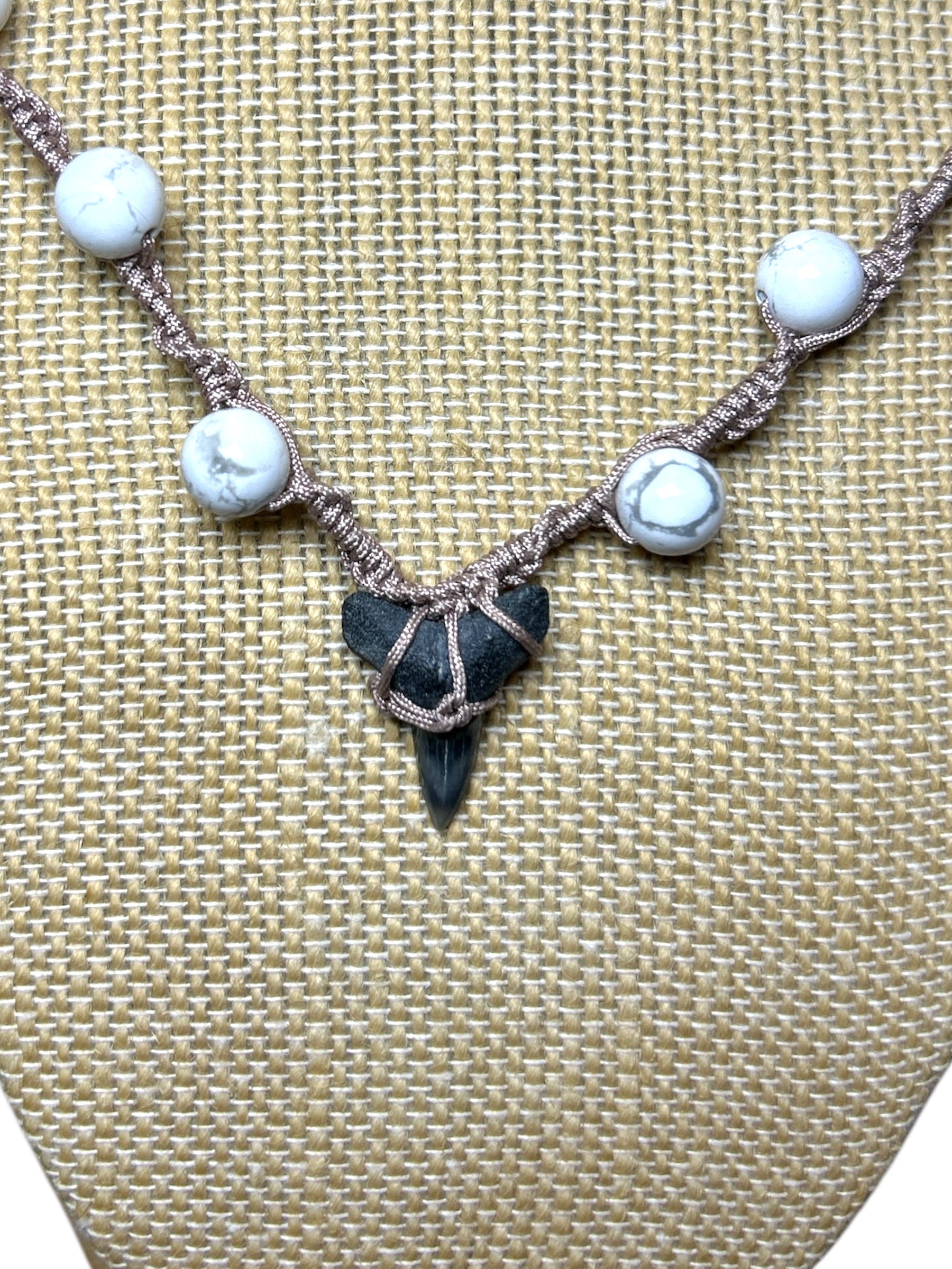 Macrame Necklace: Shark Tooth+Howlite